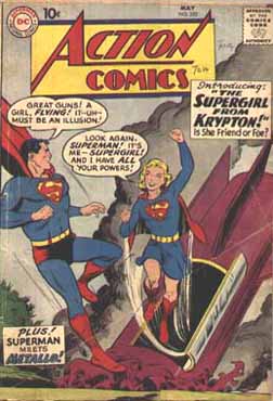 Superman sets her up in an orphanage while training her to use her powers as his “secret weapon.” Over the next few years in her series (a backup to Superman in Action) she eventually got adopted (becoming “Linda Danvers’), went public as a super-heroine, went to college and around the end of the 1960s, acquired an arch-enemy (Luthor’s niece Nasthalthia) and went to work as a TV camerawoman. She also jumped from Action to the star of Adventure Comics.