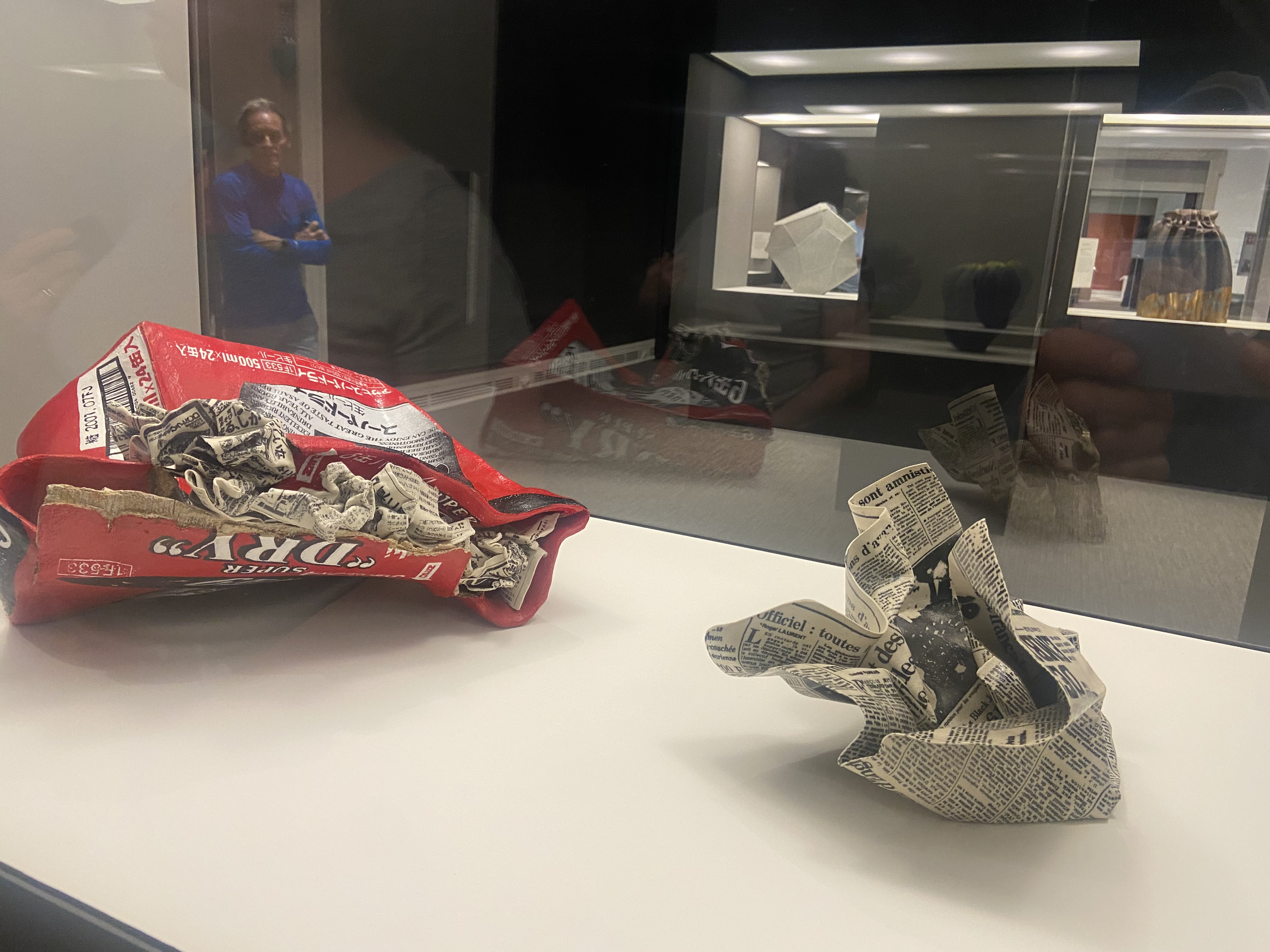 The photo advertising the exhibit highlighted this yellow piece — which I realized when I saw it up close is ceramics, not fabric.